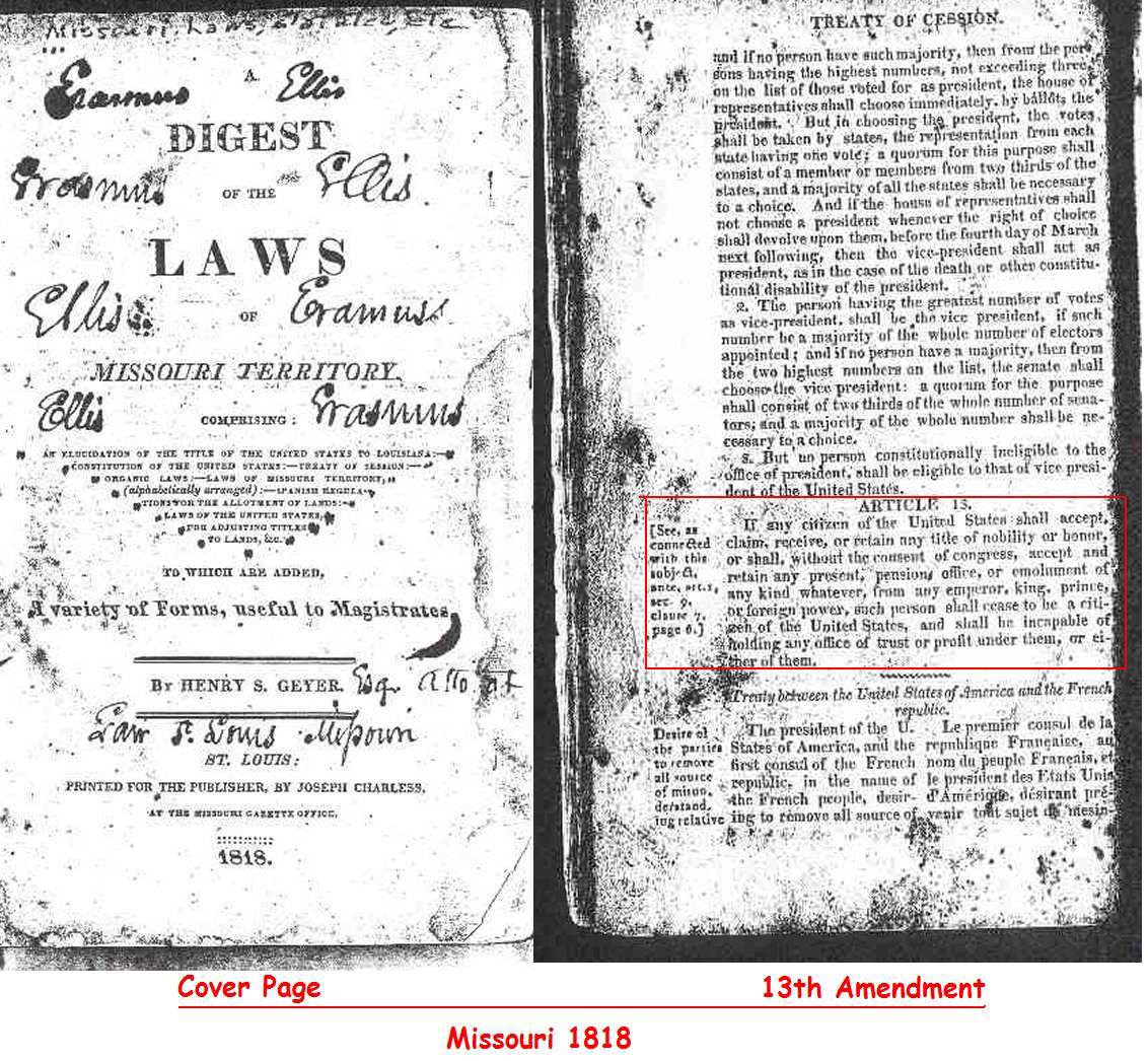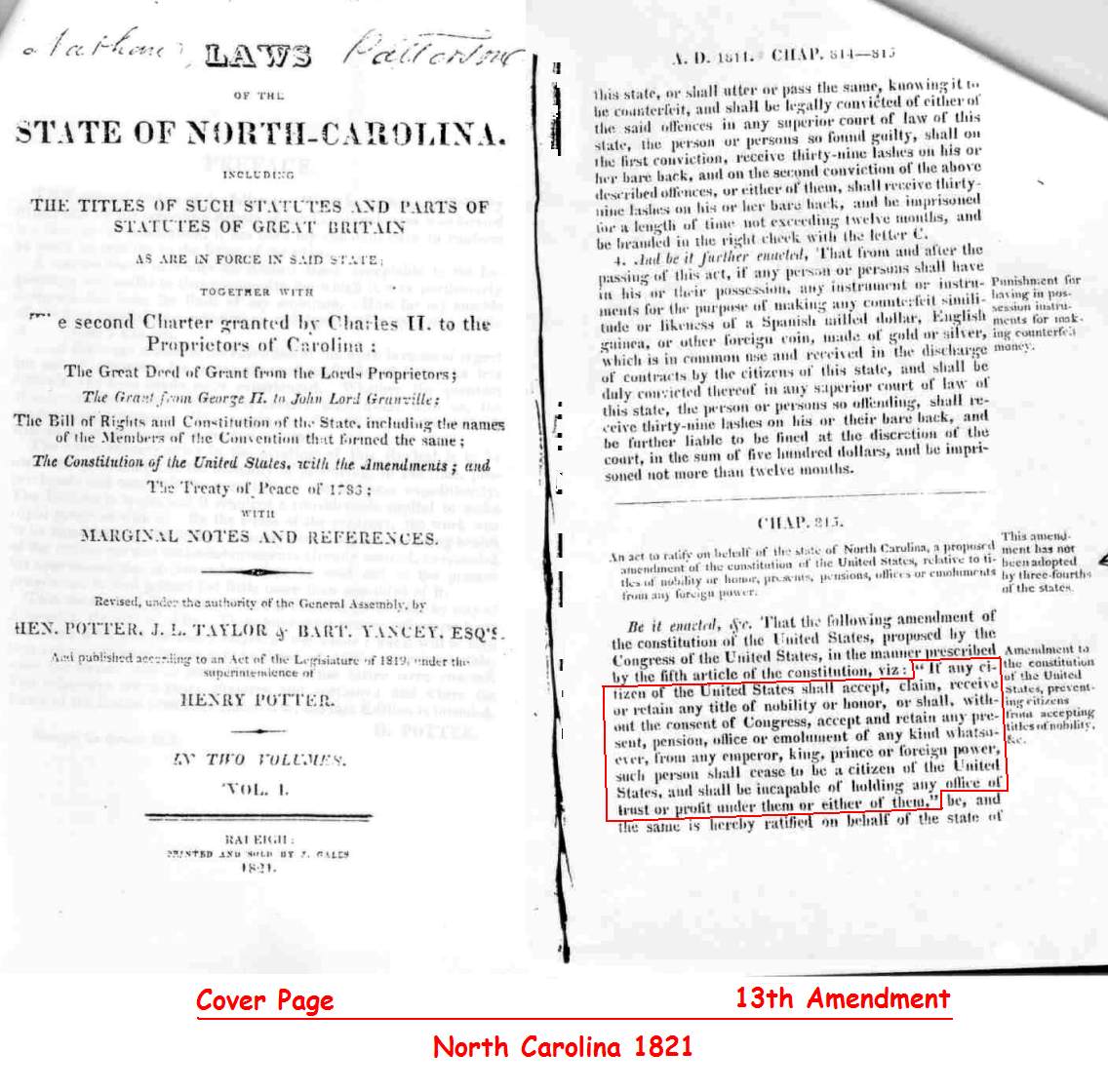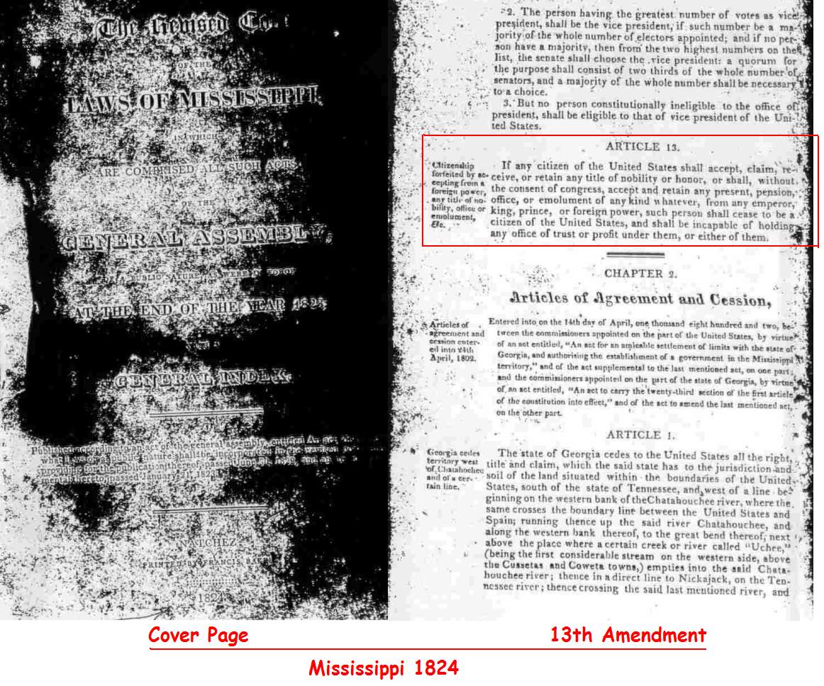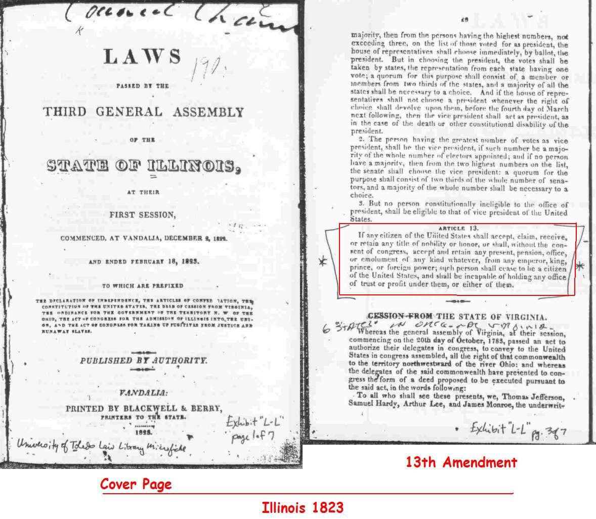 (Considerable controversy surrounds this Amendment - The official position of the Federal Government is that it was never ratified - but - in the past few months there is more than ample evidence that shows the Amendment was properly ratified on December 9, 1812, and if not then, certainly no later than March 10, 1819.
