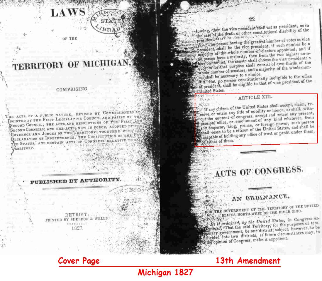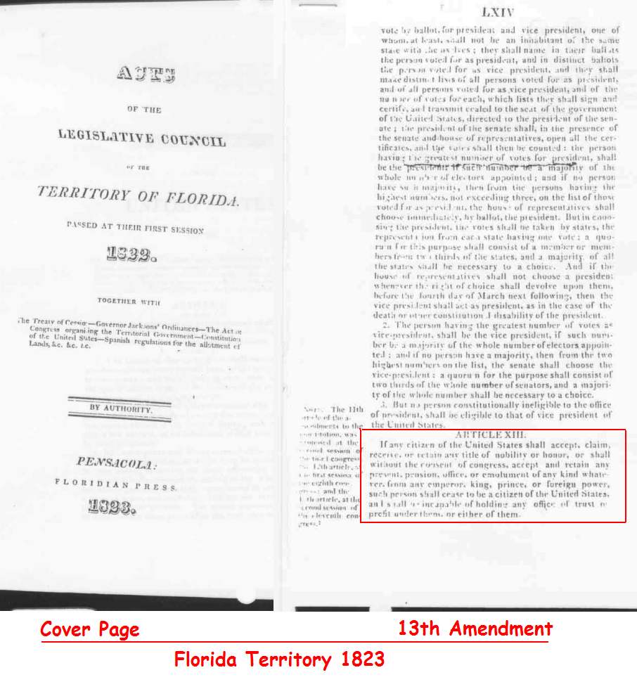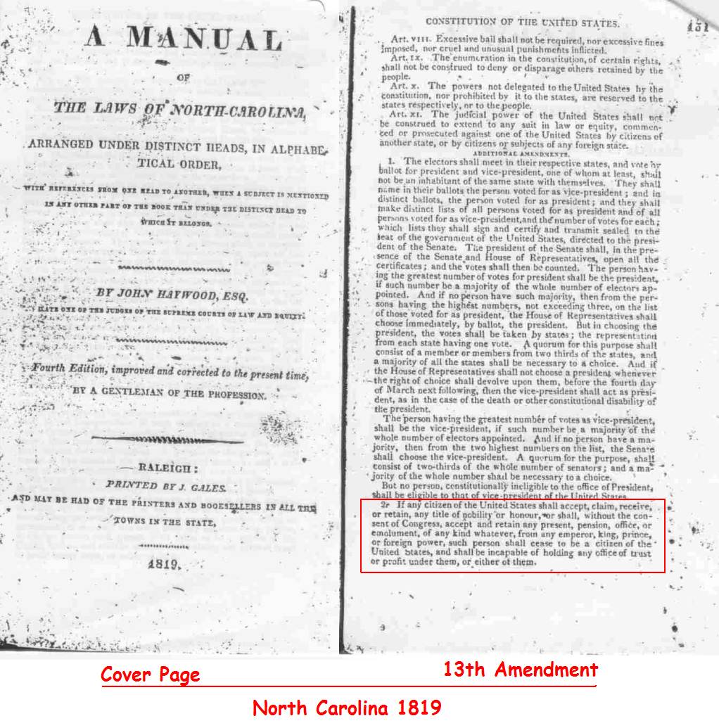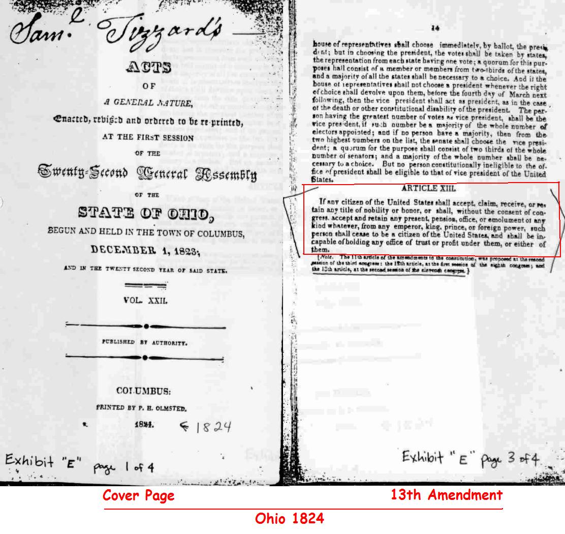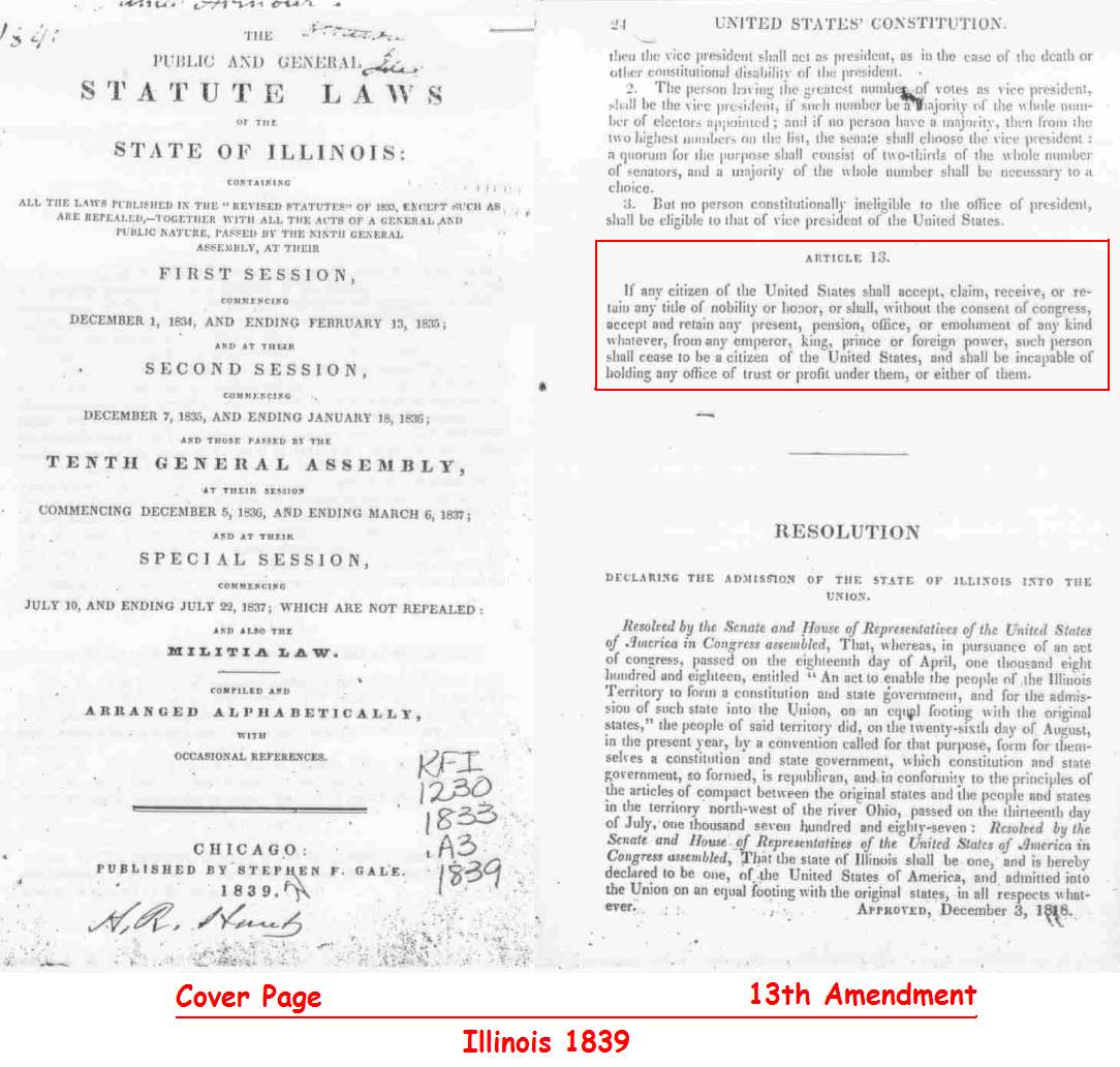 (Considerable controversy surrounds this Amendment - The official position of the Federal Government is that it was never ratified - but - in the past few months there is more than ample evidence that shows the Amendment was properly ratified on December 9, 1812, and if not then, certainly no later than March 10, 1819.